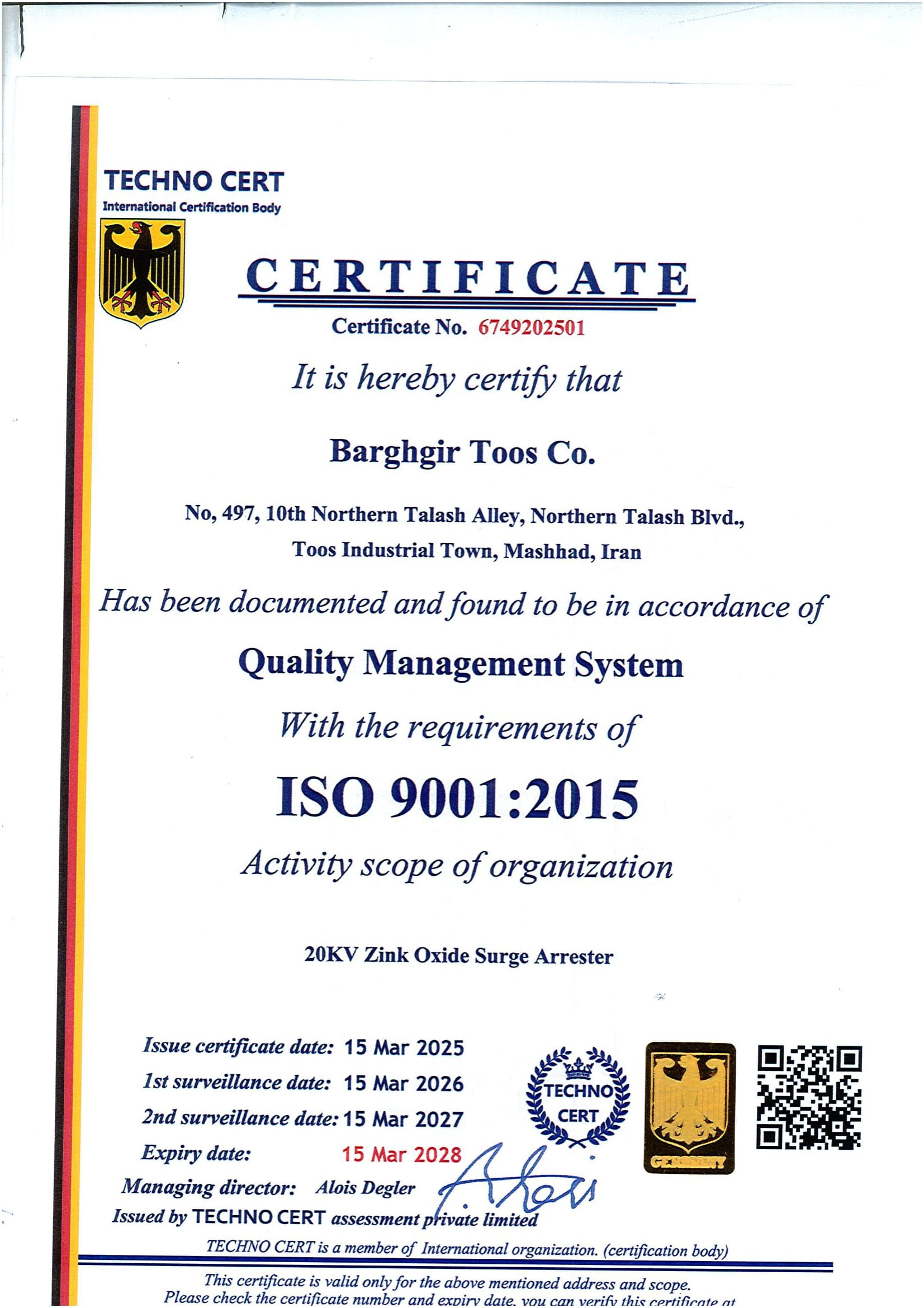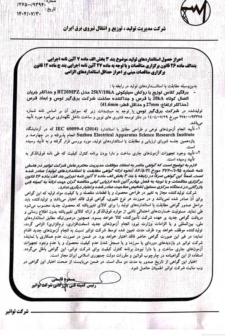- پذیرش تولید برقگیر و وریستور خاص با لحاظ پیشنهادات مشتری